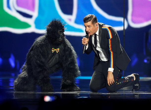 22:46 Девятым поет фаворит Евровидения Италия! Харизматичный и веселый Франческо Габбани с гориллой: