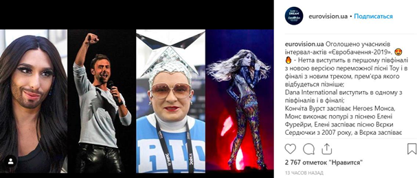На официальной Instagram-странице украинского Евровидения сообщают, что Андрей Данилко выйдет на сцену в Тель-Авиве в образе Верки Сердючки. Артист будет выступать под песню Нетты Барзилай Toy.