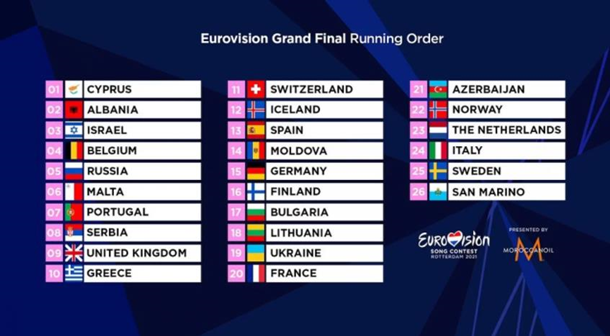 В ночь на 21 мая состоялась жеребьевка финалистов, которая определила порядок выхода участников на сцену Ahoy Arena в гранд-финале. Украинская группа GO_A выступит 19-й.